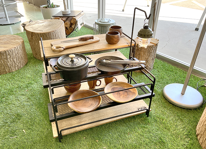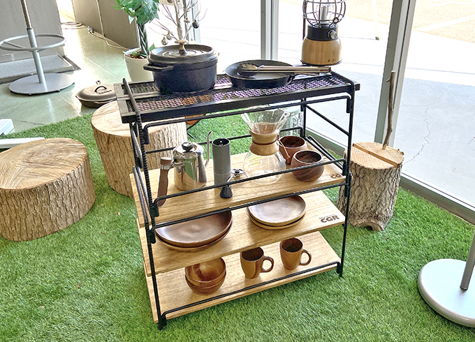 自由に組み替えて、食器等の棚として利用したり、1段づつのテーブルとして使うこともできます。