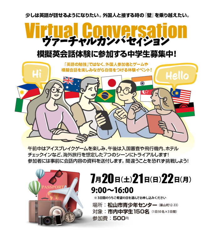 (英語力は問いませんが、簡単な挨拶ができるなど、中1程度の英語力があると望ましい)